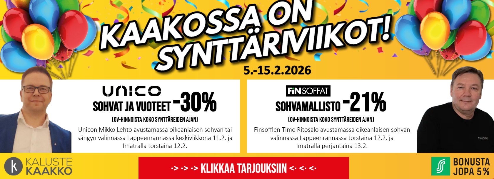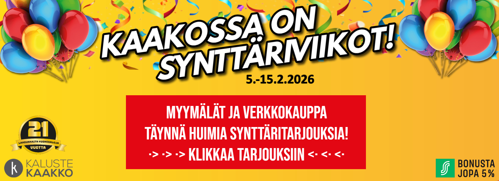 Kaluste Kaakossa on 21-vuotis synttäriviikot ja tarjouksia kaikissa tuoteryhmissä. Lisäksi s-etukortilla bonusta jopa 5% koko [...]