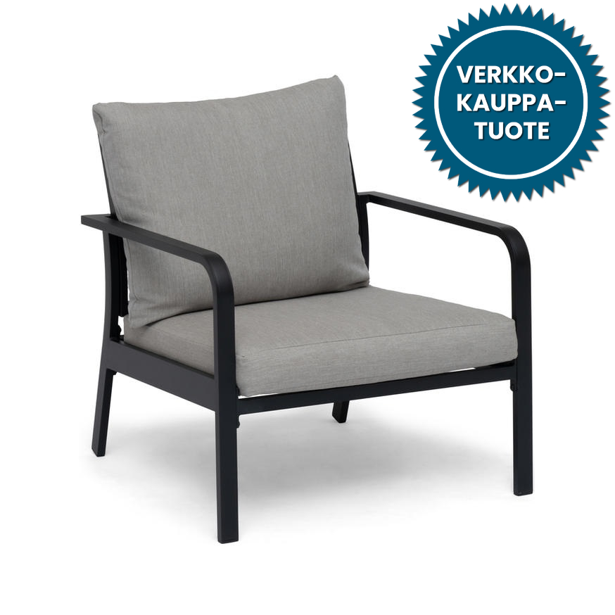 Mitat: istuinleveys cm, kokonaisleveys 78 cm, istuinsyvyys 65 cm, kokonaissyvyys 81 cm, istuinkorkeus 40 cm ja kokonaiskorkeus 82 cm