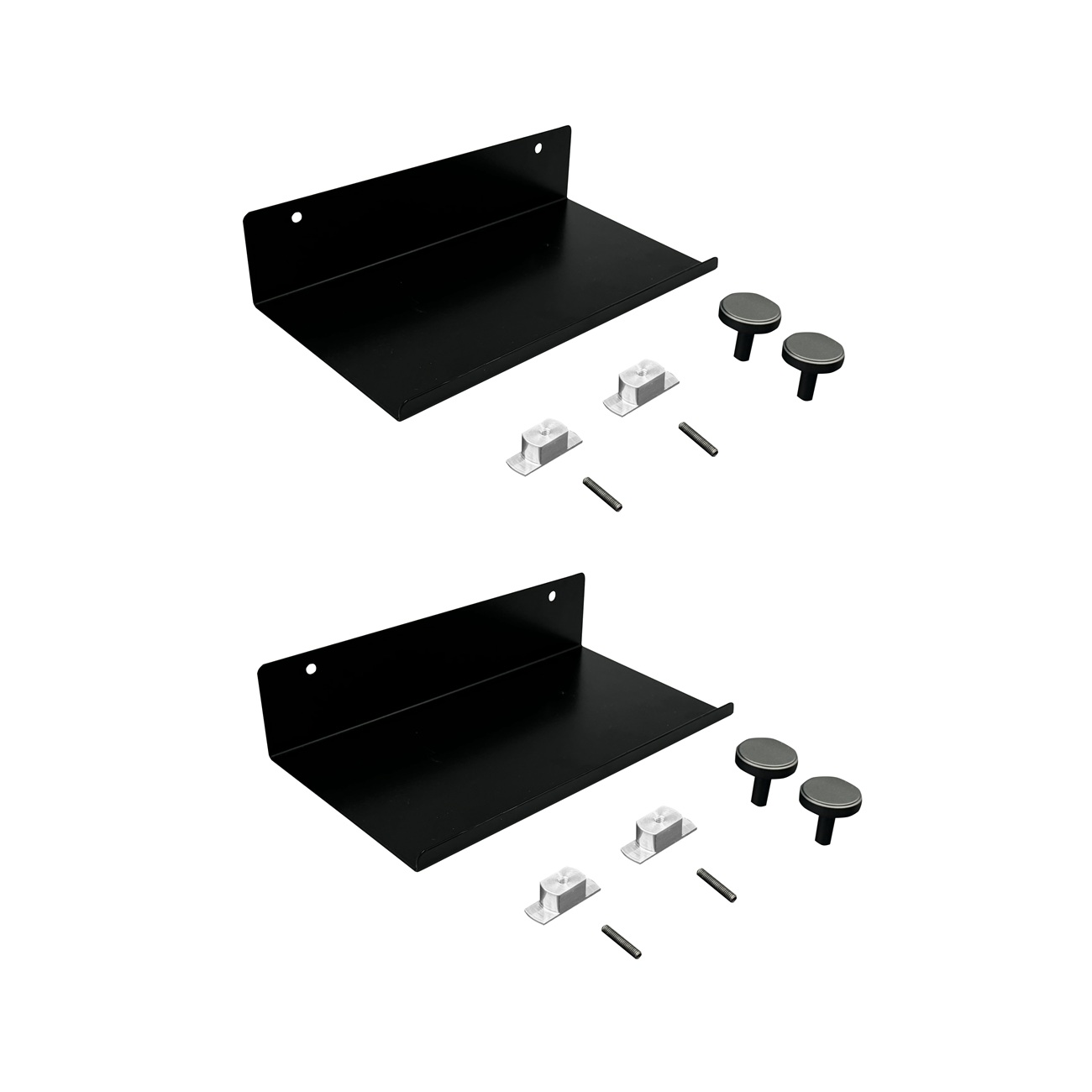 Hinta sisältää kaksi kapeaa hyllyä, neljä nuppia ja kiinnitystarvikkeet.