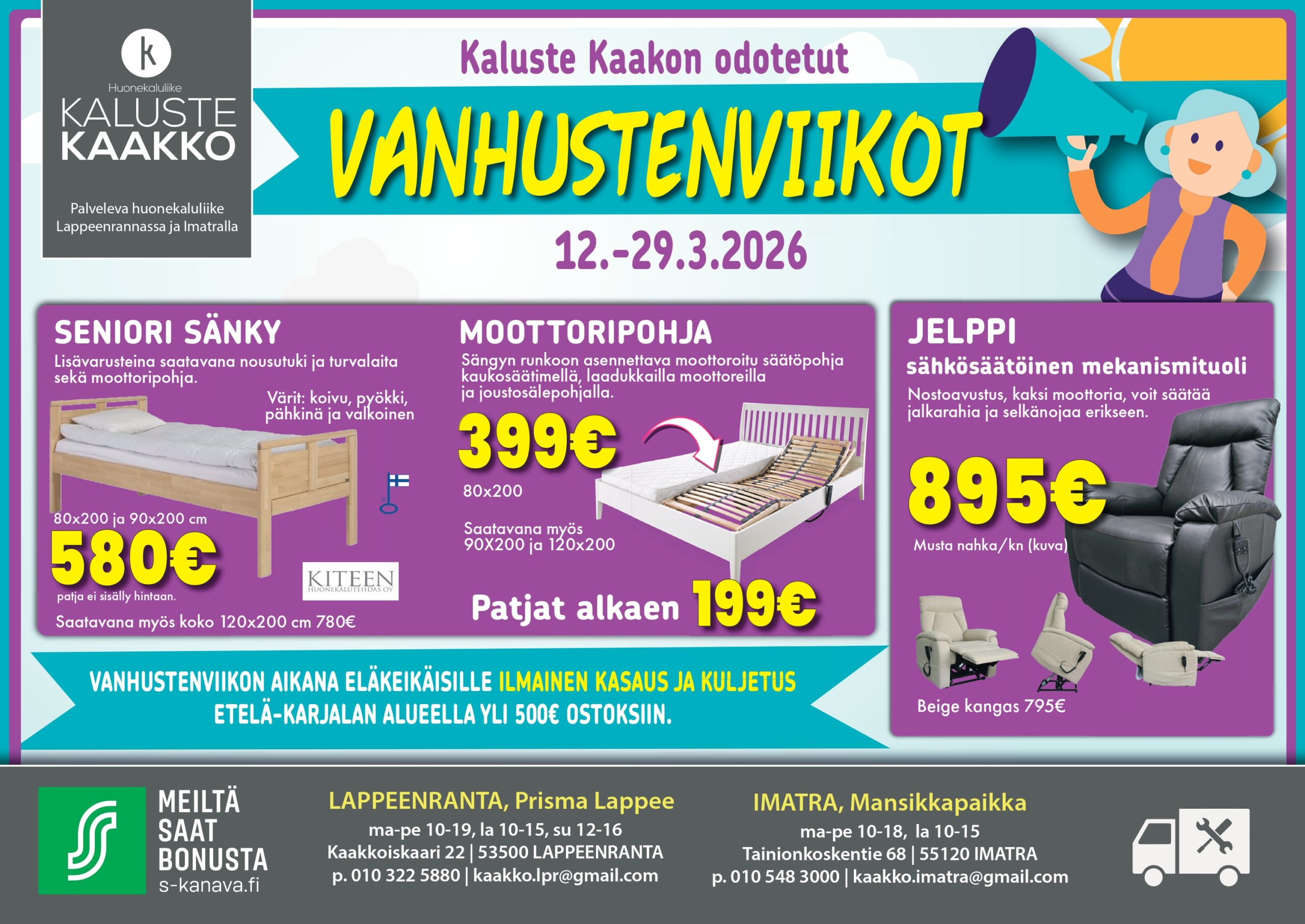 Odotetut Kaluste Kaakon vanhustenviikot 12.3.-29.3.2026.